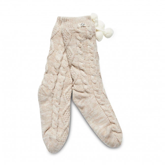 Accessoires Chaussettes Hautes Femme UGG – W Pom Pom Fleece Lined Crew Sock R.OS 1014837 Crm Beige