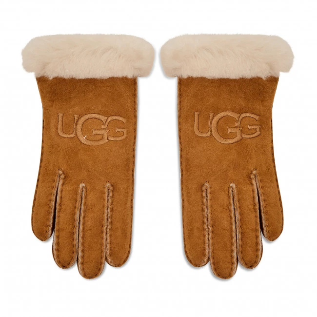 Accessoires Gants Femme Ugg – Sheepskin Embroider Glove 20931 Chestnut Marron