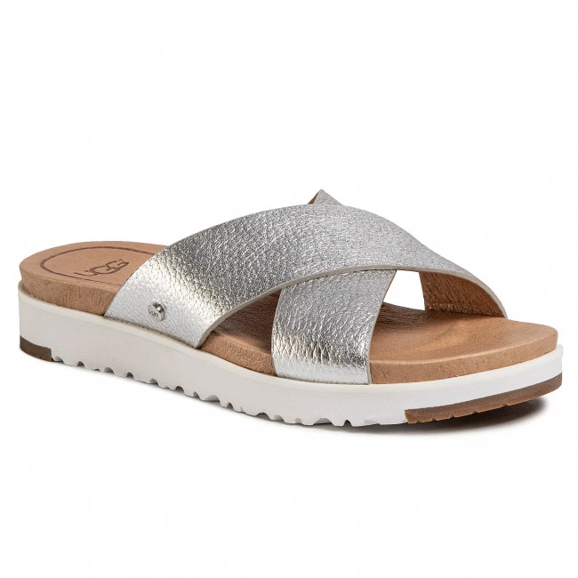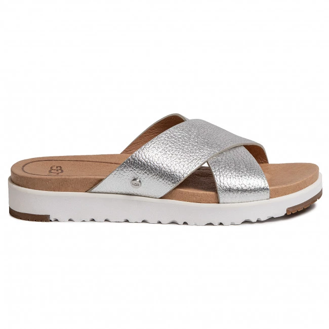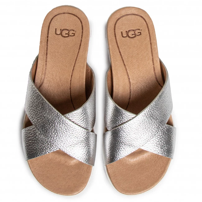 Mules / sandales de bain UGG – W Kari Metallic 1102911 Slvr ☝ Mules casual femme Ugg à prix avantageux